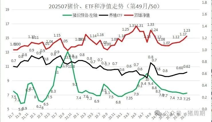 根据从2021年7月开始跟踪的畜牧ETF指数,目前养猪龙头合计收益23%(同期沪深300下跌15%,单持有养殖ETF净值0.86,比养猪双雄净值低0.37),养殖总仓位目前为7%。对于目前畜牧养殖指数0.62的净值,相对2021年的高点,目前还亏损14%,比起龙头企业,ETF哪个收益更高一目了然?