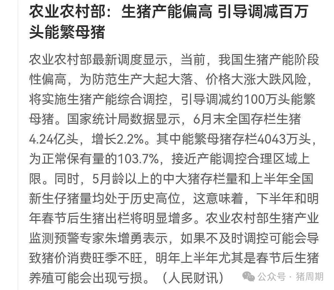 这个推测与农业部存栏和能繁过剩存在矛盾。按照农业部分析,下半年到明年上半年猪价或到12-13元,目前的情况似乎有点危言耸听了。
