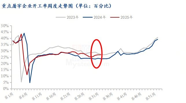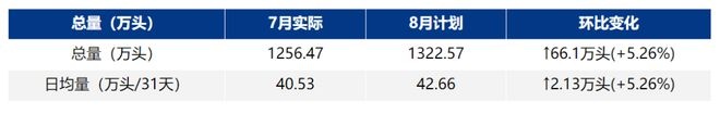 对应2024年10月能繁母猪存栏峰值(4080万头),8月商品猪理论出栏量同比增长8%,环比7月增加5%以上。规模企业月度出栏计划普遍上调,部分前期压栏猪源延后至8月释放。但从节奏看,随着规模企业月度任务逐步完成,叠加散户猪源加速出清,下旬供应压力有望环比下降,供应端“去库存”进程加快。
