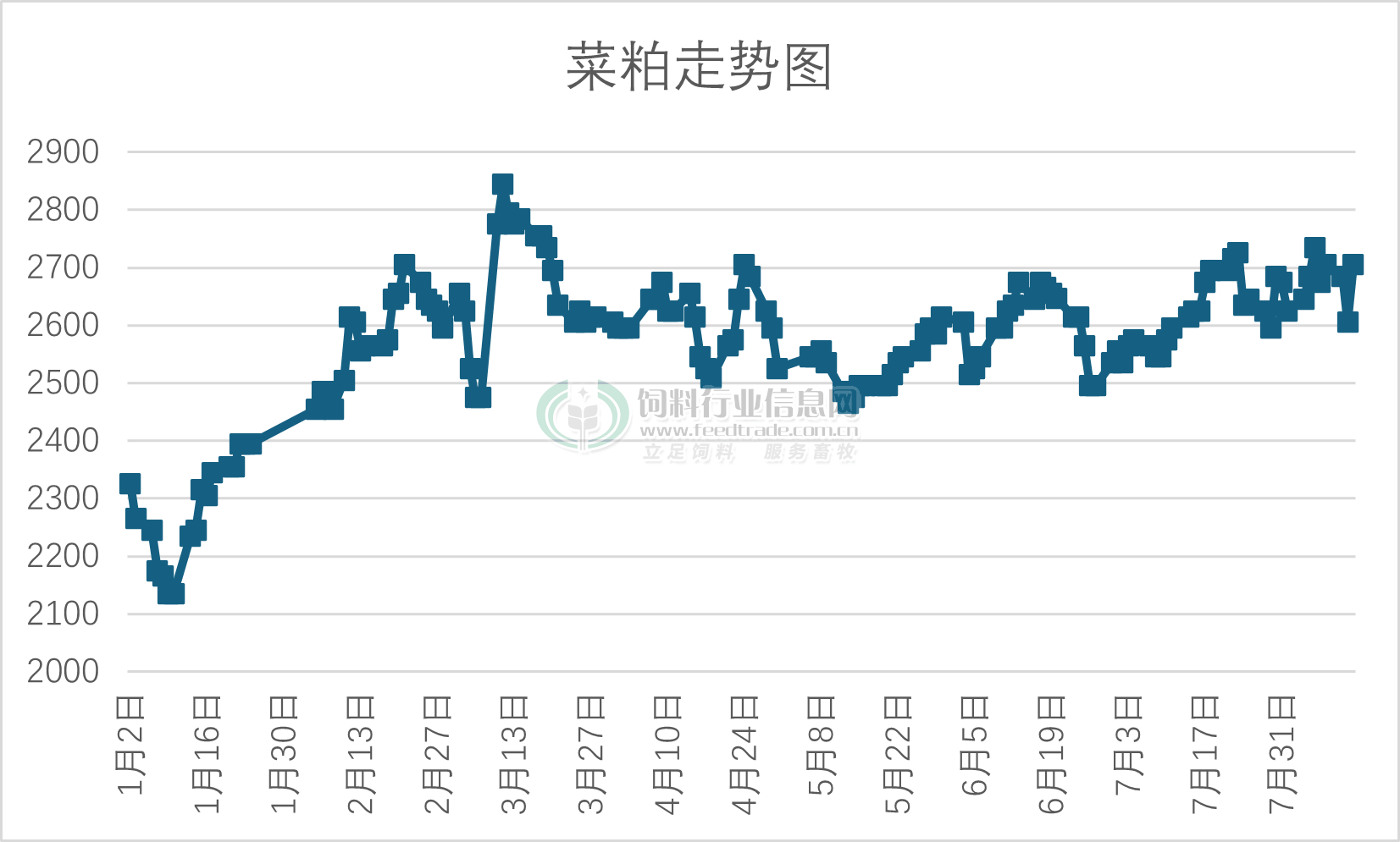 菜粕现货价格集体上涨100元。其中东莞2640元/吨,沈阳2890元/吨,南通港2660元/吨,武汉2730元/吨,天津2690元/吨,昆明2910元/吨,成都2900元/吨,合肥2640元/吨。