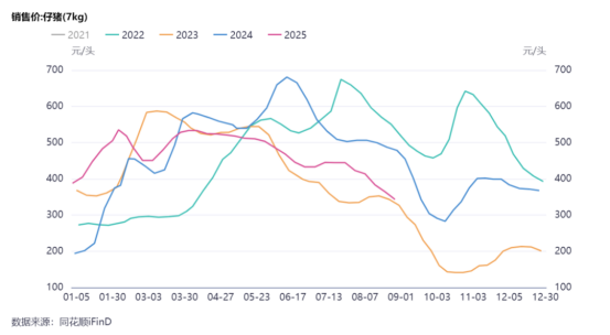 首先结合近几年仔猪价格走势来看,低点一般出现在10月份,目前到价格最低点还有1~2个月的时间;其次从价格低点来看,2024、2023年低价分别在280、140元/头附近,因此今年保守预计会跌至150~200元/头。