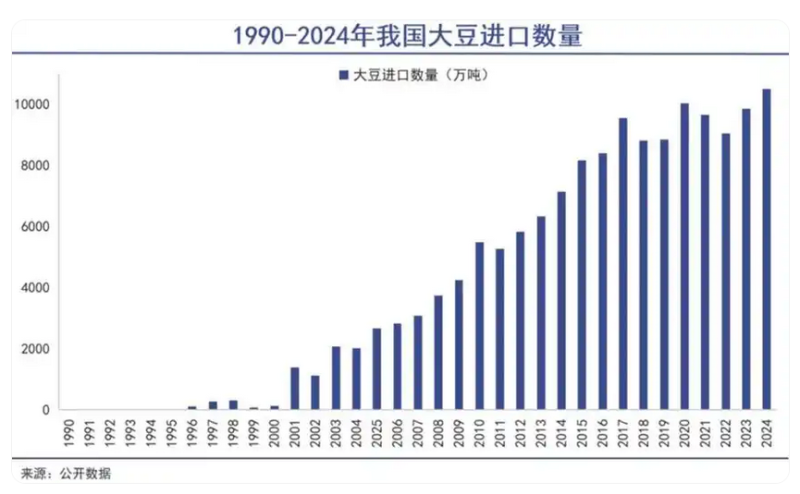 自2001年起,我国大豆进口规模呈现快速增长态势,至2024年进口量已突破1亿吨大关,稳居全球大豆进口国首位。当前,我国大豆对外依存度持续攀升,进口来源地高度集中。中国海关数据显示,2024年我国大豆对外贸易依存度已达83.57%,其中从巴西、美国、阿根廷三大主产国进口的大豆进口量占据进口总量的96%以上,年进口规模超1亿吨。