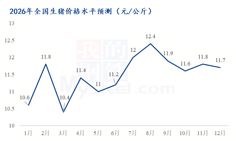 对2026年生猪均价水平的判断,核心依据源于养殖成本的刚性约束,叠加供应过剩的基本面,全年价格大概率在10-13元/公斤区间低位震荡,整体呈现“成本托底、供应压顶”的窄幅波动特征,难现趋势性上涨。