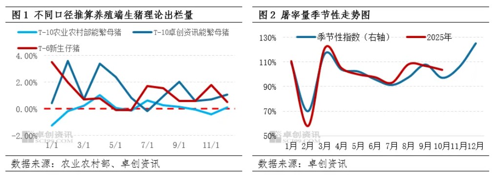 对比2021-2024年四季度春节时间在1月末或2月中旬与1月上中旬季度的平均屠宰量和生猪均价,春节时间较晚的情况下,备货意愿降低,两月平均屠宰量增幅在15%以内。而春节时间较早的情况下,两月平均屠宰量增幅在15%-25%,备货意愿提升。而2026年春节时间在2月中旬,相对较晚,终端居民消费备货意愿不强,但考虑当下对11-12月猪价预期在6.0-7.0元/斤的预测范围内,猪价低位情况下分割利润较高,企业宰量或明显增加,猪价高位,分割利润下滑,屠企或减量屠宰。截至目前10月企业日均屠宰量为18.5147万头,已较同期增加18.73%,有明显增长。因此若11-12月均价若涨至6.5元/斤以上,11-12月屠宰量或分别环比持平、环比增15%左右。若猪价在6.0-6.5元/斤以内,11-12月屠宰量环比增幅或与2024年相似,分别为8%和20%左右。