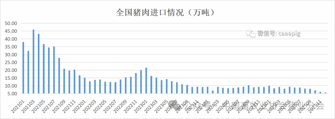 4、2025年1-12月累计进口猪肉97.58万吨,同比下降9.0%。