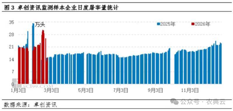 需求端来看,3月仍处于传统消费淡季,需求支撑乏力,难以对冲供应压力。春节后居民饮食结构趋于清淡,家庭库存消化接近尾声,但餐饮、团膳需求回暖缓慢,学校开学、旅游复苏对消费的拉动作用有限,终端市场仍处于“需求真空期”,预计3月日均屠宰量将呈现环比回落态势,屠宰企业开工率难有显著提升,对生猪价格难以形成有效支撑。