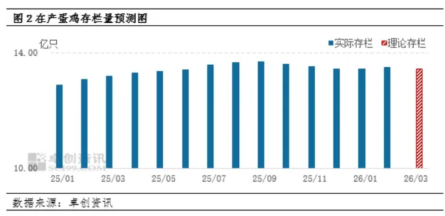 今年春节后,鸡蛋产业链复工节奏整体偏快,低位蛋价带动贸易商积极补货,下游食品加工与餐饮需求恢复速度和强度均超市场预期,节后行业库存处于历史同期低位,对蛋价支撑作用逐渐显现。2025年四季度补栏偏弱将逐步传导至2026年3月,预计3月全国在产蛋鸡存栏量环比减少超0.5%。不过,当前老鸡占比偏低,若后续淘汰节奏不及预期,叠加新增补栏的滞后影响,二季度产能去化进度或存在不及预期的风险,进而对中期鸡蛋价格反弹形成压制。