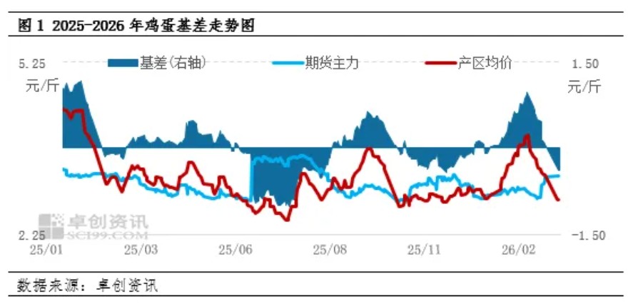 【导语】2026年春节前后,鸡蛋市场呈现典型的“期现分化”格局:现货受备货驱动一度冲高至3.98元/斤,累计涨幅超30%;而鸡蛋2603合约提前定价节后淡季,期现基差走扩,通过现货下跌完成修复。2月在产存栏同比仍增超3%,但四季度补栏偏弱将逐步传导,3月存栏预计环比微减。综合供需推演,3月蛋价或呈“先涨后跌再回升”走势,3月均价预计3.01元/斤。