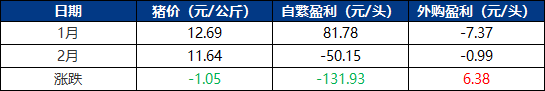 从样本数据来看,2月养殖端普遍未完成出栏计划,一方面时间紧、任务重,出栏压力较大,另一方面规模企业小体重猪源适当压栏;因此实际完成情况欠佳。按照正常的生产轮转和现有存栏情况,样本企业3月份出栏计划明显增加,且部分小体重猪源延后至3月份销售,因此总体出栏压力仍大;并且日均出栏量(理论)同样环比增加。此外,部分散户猪源节前未销售结束,3月压力同样不小。