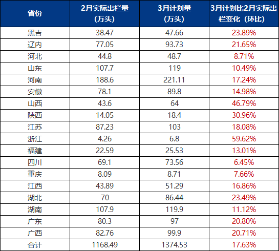 从供应端来看,下月养殖端出栏压力或继续增加。从需求端来看,节后传统淡季,消化节日库存为主,屠宰企业宰量增加缓慢,终端消费低迷,需求不及二月份。