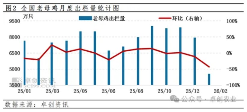 2月全国老母鸡出栏量环比减少,推高市场价格