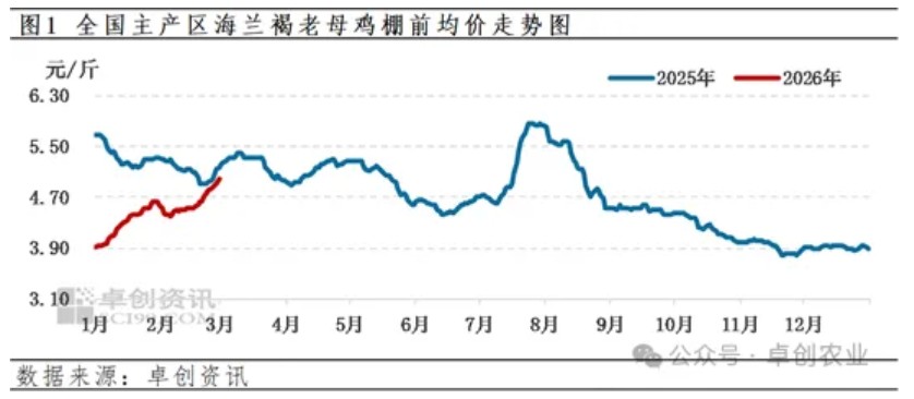 【导语】2月适龄老母鸡不多,且受节日效应影响,养殖单位出栏意向不高,老鸡供应量偏少推高市场价格。3月份供应或仍有限,老鸡价格或小幅上涨。