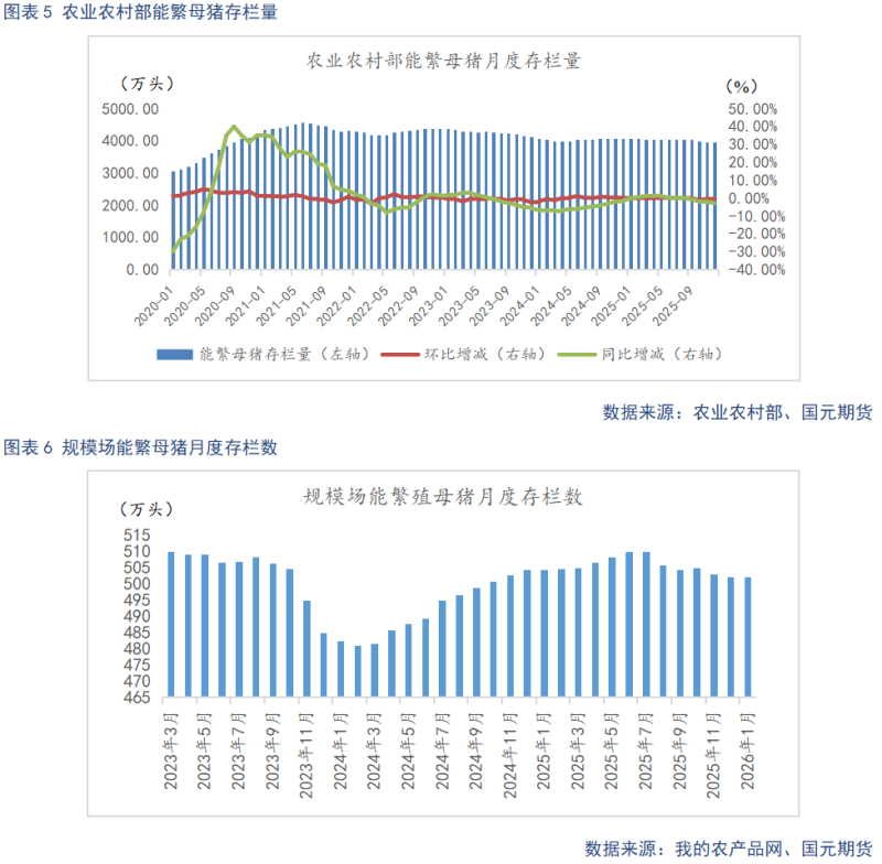2025年末全国能繁母猪存栏量为3961万头,这意味着此次计划调降幅度达311万头。而2024年11月末全国能繁母猪存栏量曾达4080万头的年内高点,以此计算,计划调降幅度将达11%,进一步压缩过剩产能,推动能繁母猪存栏回归合理区间。
