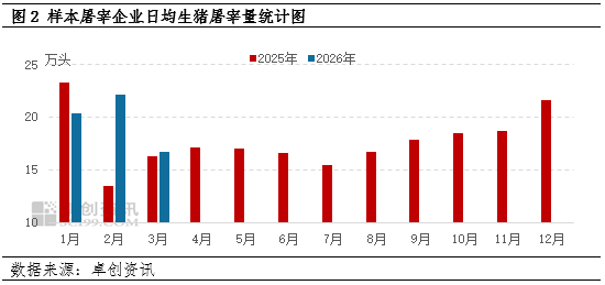 与2025年同期相比,2026年春节假期过后生猪屠宰量恢复速度相对偏快,但在生猪供应充沛压力主导下,生猪价格仍下降,2026年3月份样本屠宰企业日均生猪屠宰量同比增幅2.62%。即使生猪采购成本偏低,屠宰企业冻品入库积极性并无显著提升,因此2026年3月份生猪屠宰量恢复主要受猪肉价格低位对终端消费提振的影响。