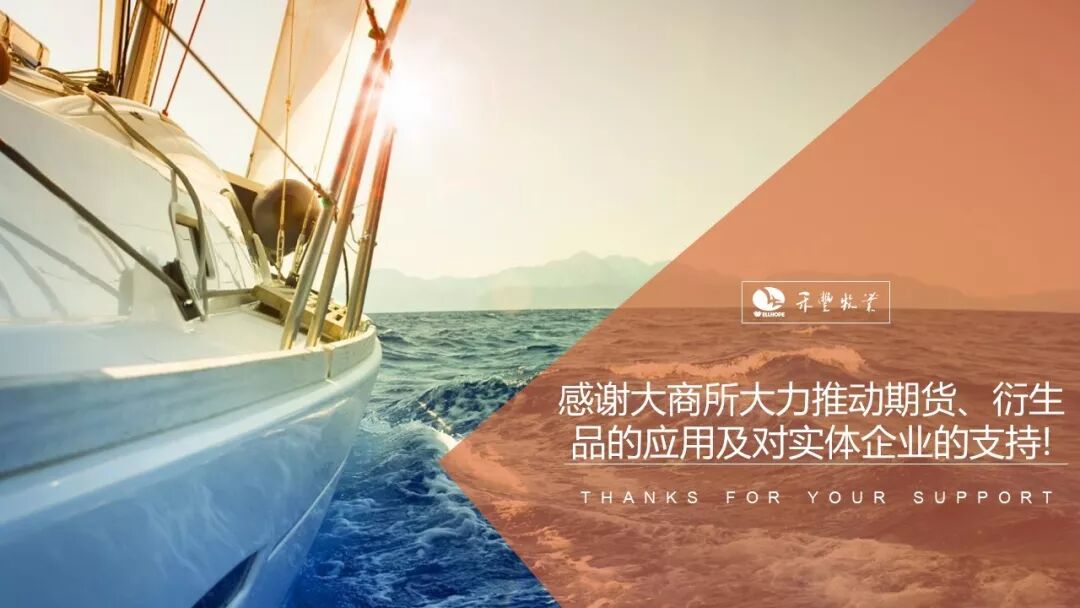 通过科学的手段降低我们的采购成本,这里我可以自豪地说,我们的原料成本明显低于主要竞争对手,所以我们今年前三季度实现归母净利润75.95%的增长。这个增长主要由肉鸡产业贡献,禾丰与合作伙伴生产的白羽肉鸡鸡肉量现在是中国第一,每10只肉鸡就有一只是禾丰体系生产的,肉鸡生产也有非常敏感的成本,肉鸡生产的成本主要是饲料原料成本,我们在原料采购上采用了多样化的期现结合方式。刚才理事长说辽宁企业还没有企业应用套期保值等期货手段,这一点我还是要当仁不让地说,我们不仅使用了,而且还尝试了多种可行的方案。拿豆粕来说,我们使用基差采购可以占到豆粕总采购量的80%,期货期权也被应用到点价及套期保值当中,同时我们也尝试期货交割这种别人不常用的采购方式,对企业发展很有帮助。