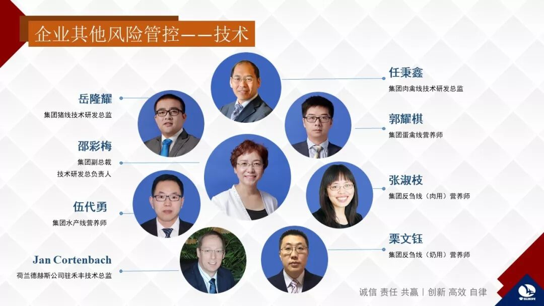 技术风险有两个风险,早期是技术保密的风险,最早的时候这个行业谁有好的配方谁就挣钱,所以技术要保密。现在的风险不是技术保密,现在风险就是首先要找到那些对某个领域非常热爱、执着的又有才干的研发人才,因为热爱是比责任感更好的老师。第二又不能放纵他们的个人喜好,企业要有一个宏观的方向指引,在这个方向指引上把他们分门别类放在不同岗位上。识别大方向非常重要,这就要靠企业董事会甚至董事长本人。比如,中国即将禁止所有饲料添加抗生素,如果以前对此没有准备,还是用大量抗生素,你的饲料就卖不出去了。禾丰在这点上做得很好,7个创始人1个博士、3个硕士、3个大学毕业,集团高管也都是资深专业人士,这些人至今还在第一线工作,而且不断学习提高自己,保证了企业大方向正确。比如说现在禾丰如果有外国专家来交流了,无论哪位内部管理者做翻译,如果我走进会场他都会紧张的,因为他担心翻译错了被我现场纠正或者当场替代,甚至讲技术我在场大家也有压力。可能将来更大的公司不需要这样的老板,但是在第一代创业人中,懂行业、懂专业、有知识的企业家更容易成功。